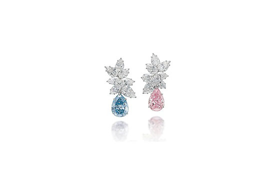 宝格丽定制耳环(饰以粉色及蓝色钻石),于2014年拍卖