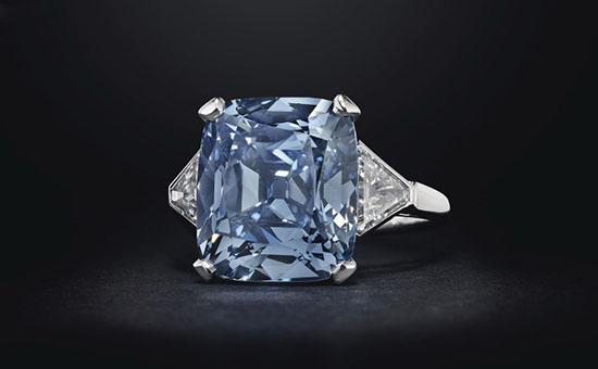 在2013年举办的伦敦邦瀚斯(Bonhams London)拍卖会上,这枚精致优雅的戒指以逾最高估价四倍的价格成功拍出,创下蓝色钻石每克拉价格的世界纪录。
